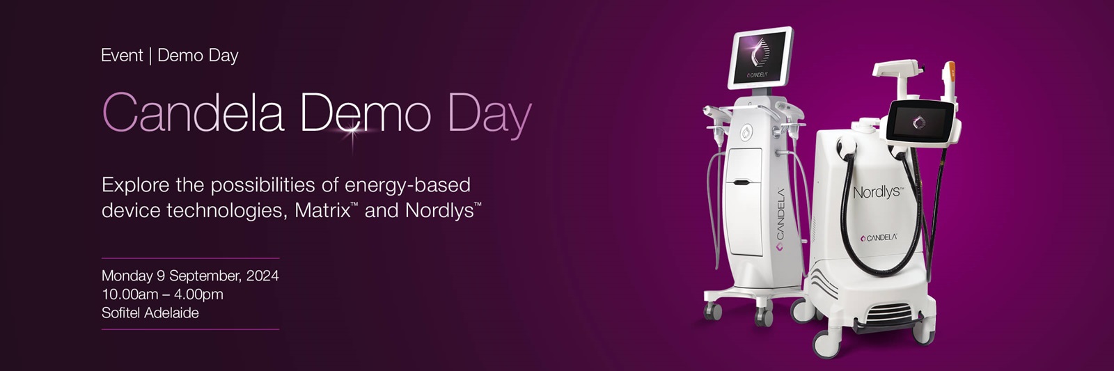 Don’t miss this opportunity to discover Candela’s cutting-edge medical and aesthetic devices, tailored to elevate your treatment offerings. Book now to meet with your BDM, Marie Wright, and get an in-depth look at the Matrix and Nordlys systems. Experience firsthand what sets Candela apart. Secure your spot now.